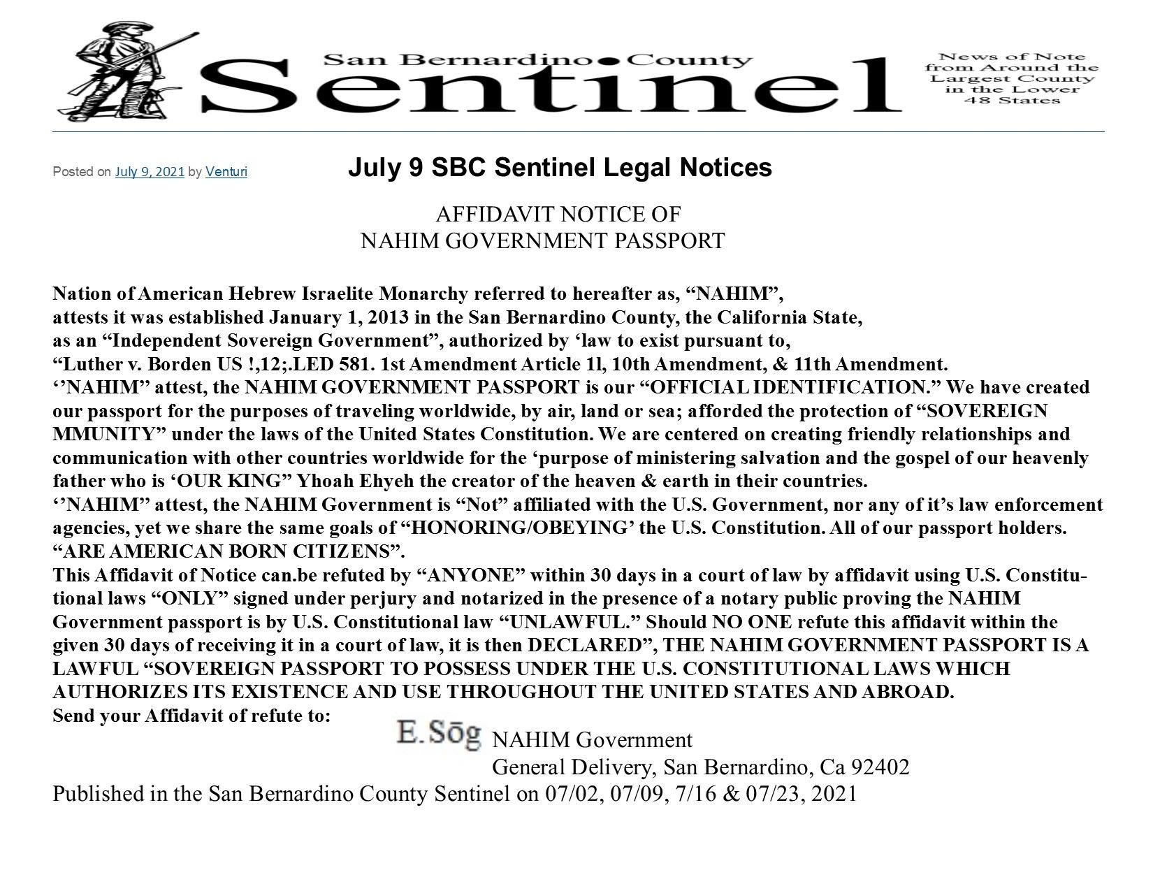 NAHIM Government was formed by and for the people of America which is a Sovereign" Nation. Sovereignty was & is in the people. The Sovereignty in EVERY state resides in the people. The law here in America gave & gives the people the right to choose their OWN FORM of Government, and to change or alter it at their OWN pleasure. "Luther v. Borden. Sovereignty is NOT a movement, its OUR RIGHT. Sovereignty is "SUPREME POWER OR AUTHORITY", which ALL Americans possess by law, we just been "DEPRIVED" of it. This means: TAKE CONTROL OF YOUR LIFE, you have "Sovereign Immunity". ITS THE LAW. "STOP" applying for, filling out forms to be sovereign, DONT ASK for permission to live freely, JUST DO IT.